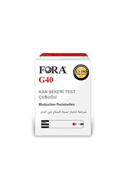 Fora G40 Şeker Ölçüm Stripi, Fora G40 model şeker ölçüm cihazıyla birlikte kullanılmak üzere tasarlanmıştır. Cihazın kullanım kılavuzuna göre, stripin doğru şekilde yerleştirilmesi ve kan örneğinin uygun şekilde uygulanması gerekmektedir. Detaylı kullanım talimatları için cihazın kullanım kılavuzunu ve stripin ambalajındaki talimatları dikkatlice inceleyiniz. Kullanım önerisi ve porsiyon miktarı ürün etiketinde belirtilir. Güncel talimatlar için etiketi esas alınız; özel durumlarda uzman görüşü alınız.