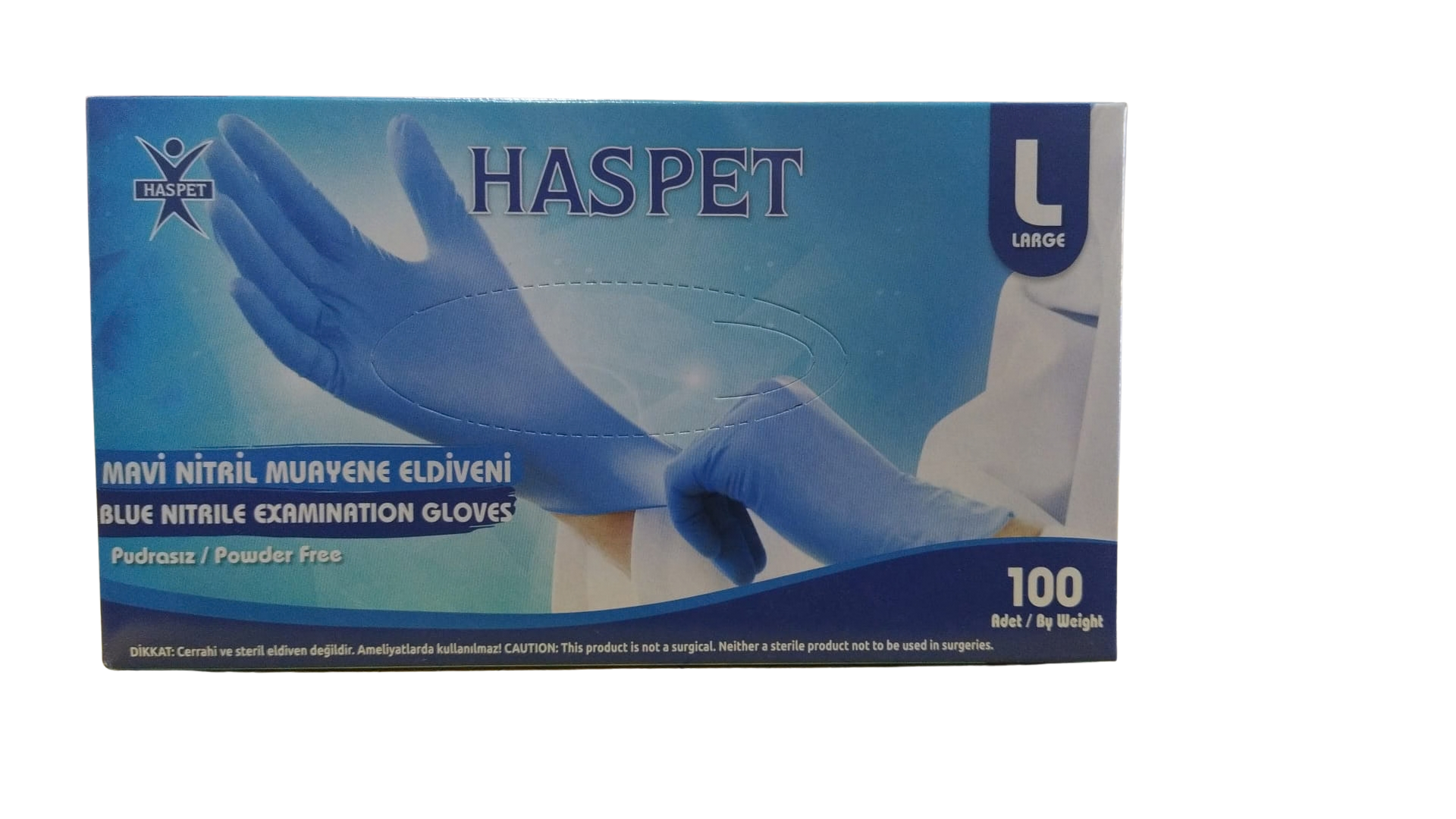 HASPET Pudrasız Mavi Nitril Muayene Eldiveni L (Large) 100'lü